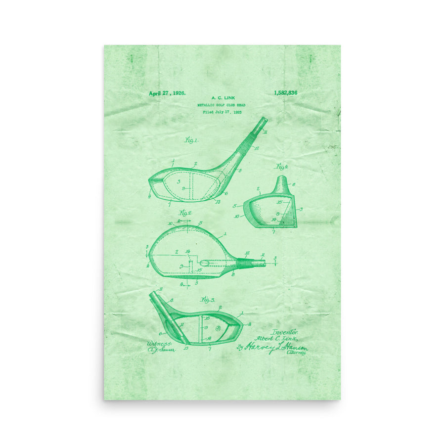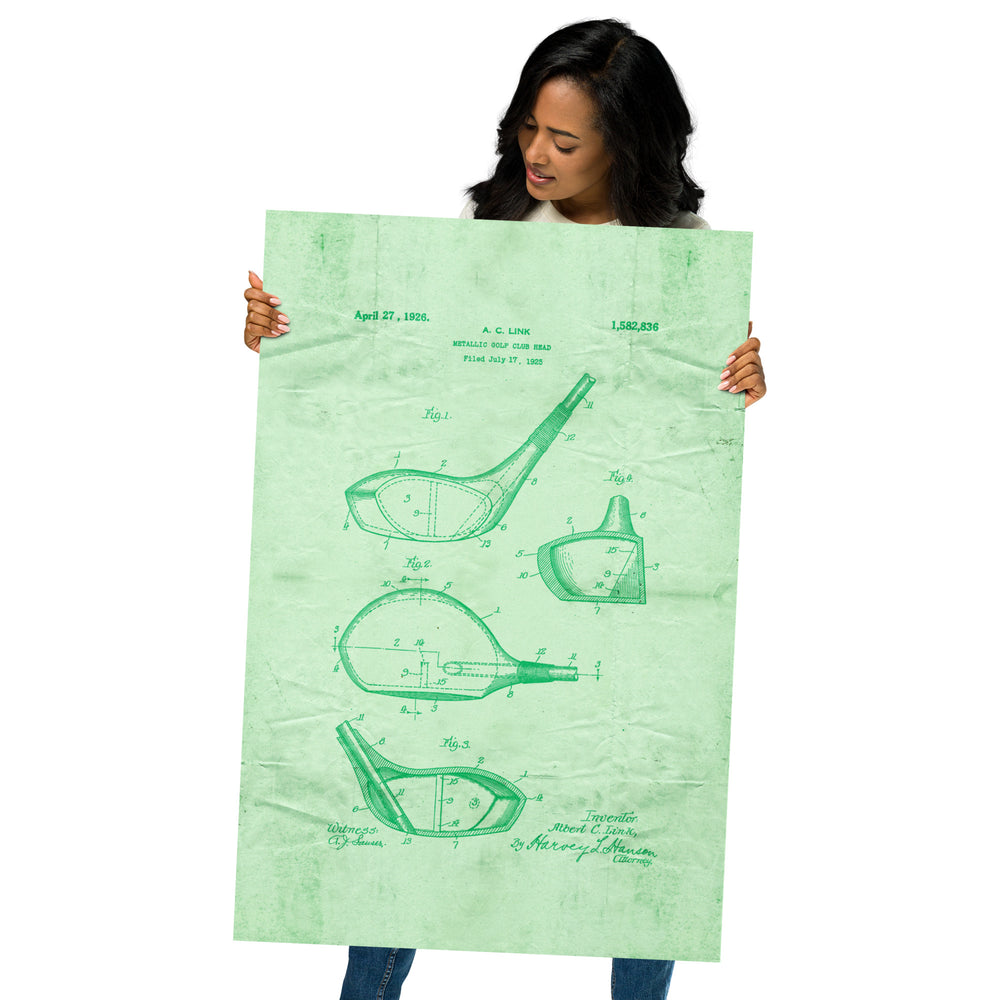 Golf Driver Patent Pended 1926 Retro Poster - 24" x 36"