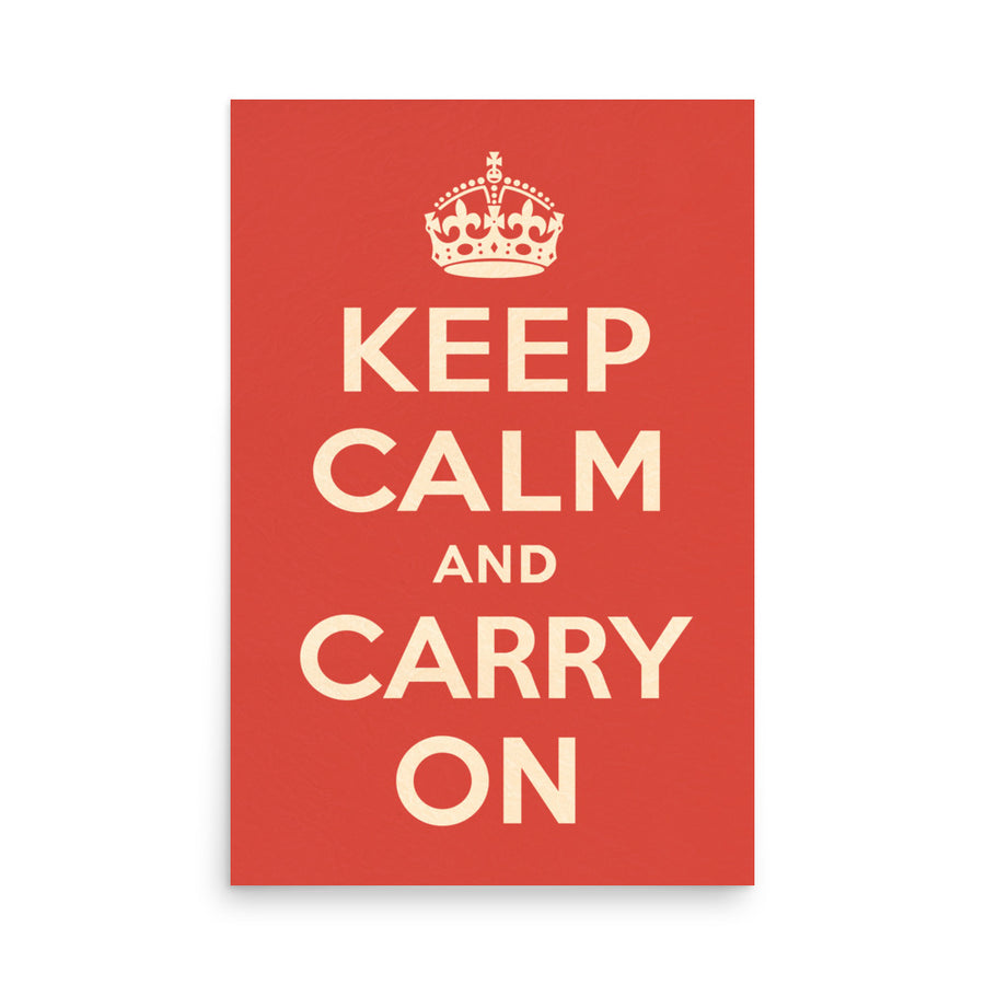 The "Keep Calm and Carry On" poster from World War II was part of a series created by the British government in 1939. Intended for use in the event of a German invasion, it featured a simple design with a crown atop the text. Although the "Keep Calm" posters were never widely circulated during the war, the phrase gained popularity in later years, becoming an enduring symbol of British resolve and resilience in the face of adversity.