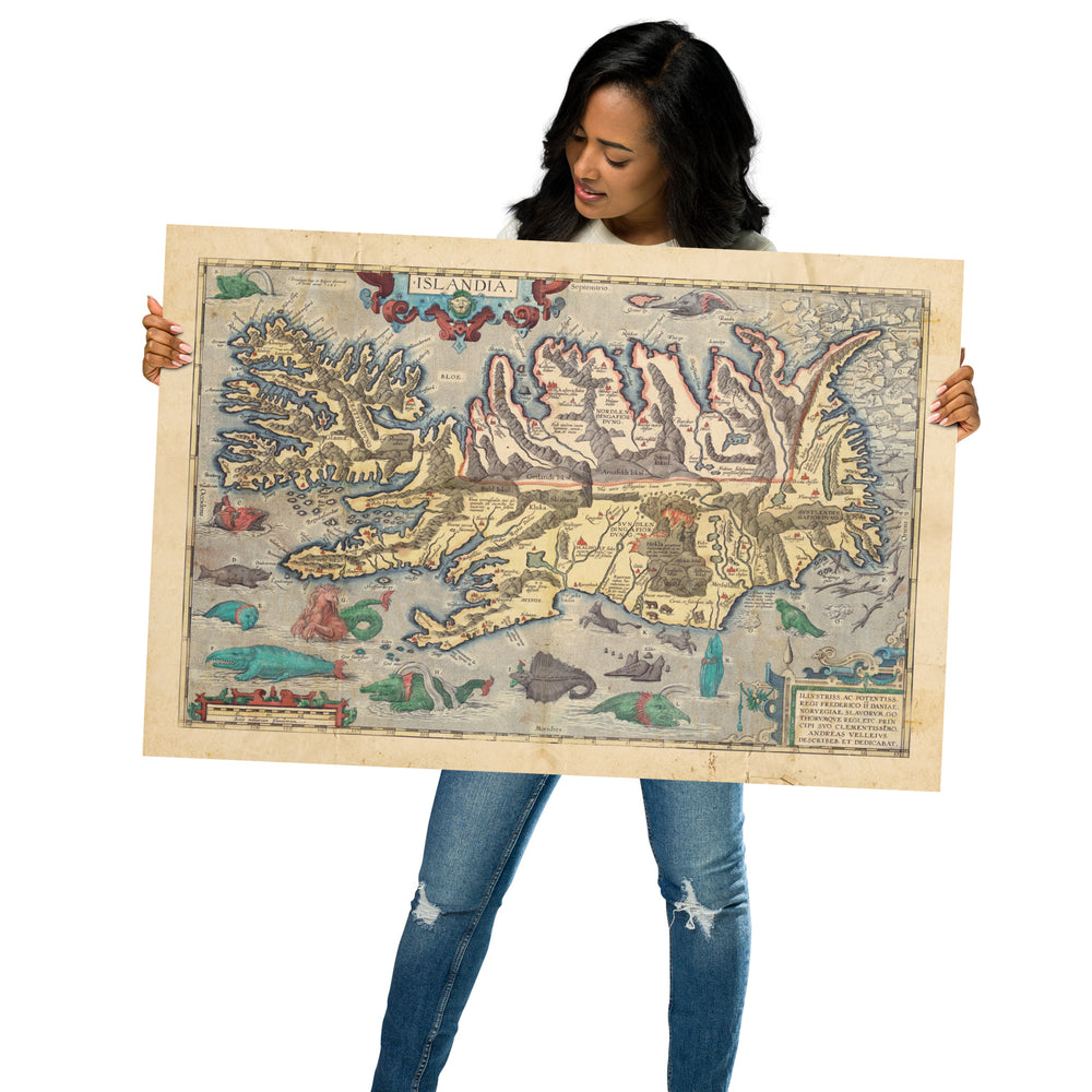 Viking Islandia Map 1603 Retro Poster - 36" x 24"
